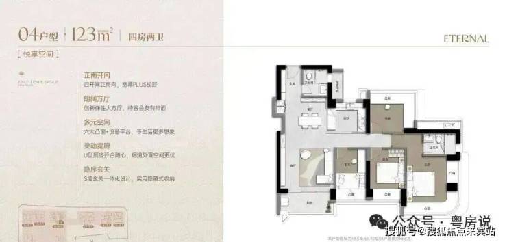 新规产品,销售使用率90%+,近1:1梯户比,大户型双电梯独立电梯厅入户,北区2梯2户,双电梯独立电梯厅入户,南区3梯4户。
