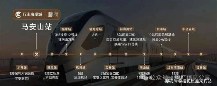 这次海岸城檀府距离11号快线马安山站直线仅300m,5站到机场,7站到宝中。换乘1号线还可通勤南山科技园、后海、福田中心和车公庙等。