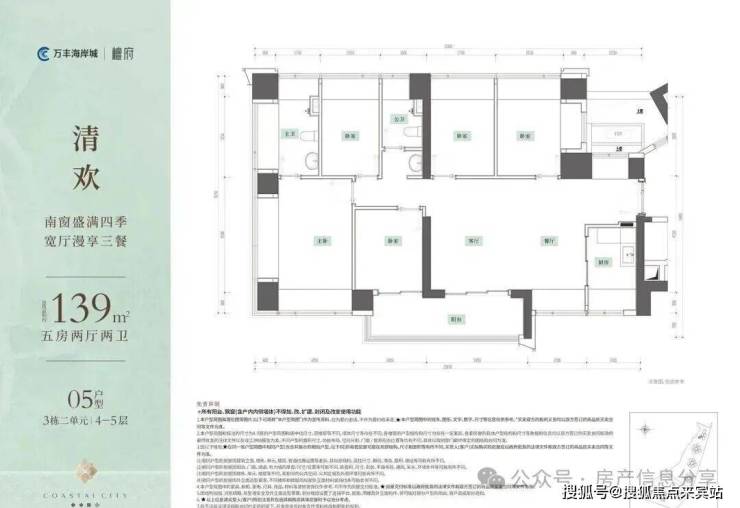 💎约139㎡5房2厅2卫南向横厅大五房,南北通透,片区独有!💎户型亮点:• 15米大面宽,约6.8米景观阳台,无遮挡公园视野• 奢配主卧进深4.5米,主卫双飘窗采光可作双台盆• 全屋12个飘窗,懂收纳更懂空间使用