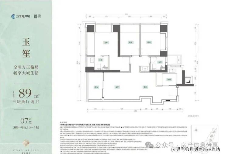 【户型品鉴】89-103㎡3-4房💎约89㎡3房2厅2卫史上入驻海岸城!!最低门槛户型!!💎户型亮点:• 玄关“S”墙设计,满足冰箱和入户收纳柜• 进深约1.75m大阳台,轻松打造私家小花园• U型厨房设计,洗切炒动线合理布局• 主卧衣帽间+双面飘窗,小户型大享受