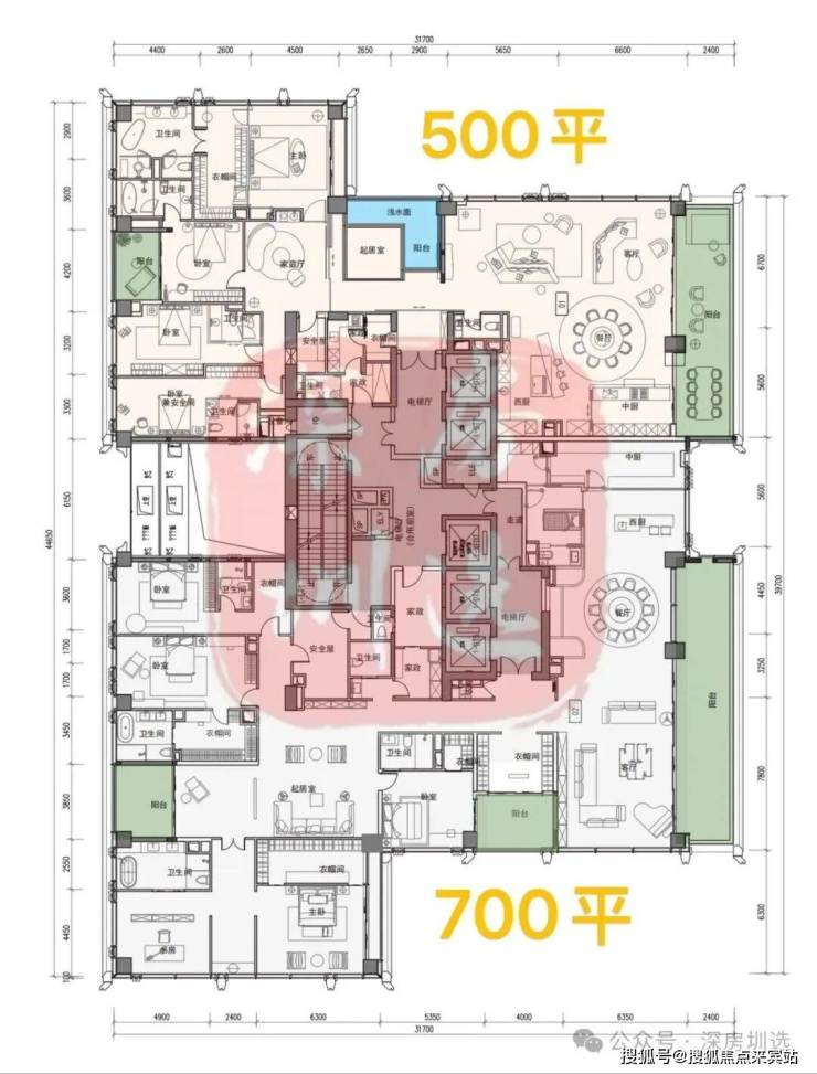 ③超高区58F起(200米以上)是约500-700㎡顶级大平层;