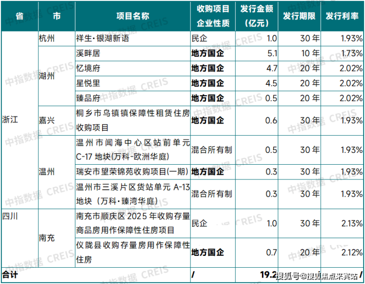 从金额来看,浙江、四川两地用于收购存量商品房的专项债券分别为17.5亿元、1.7亿元,分别占各省当期发行新增专项债券的3.2%、0.6%(浙江、四川当期分别发行新增专项债券552.7亿元、284.3亿元),合计发行金额19.2亿元,整体规模不高。