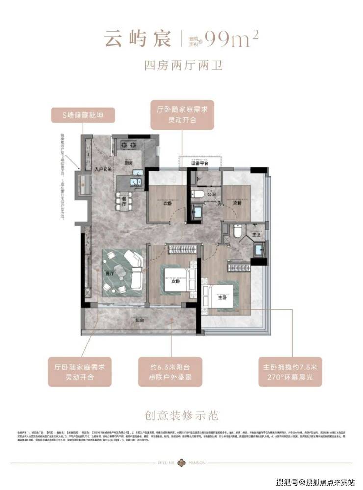 3.加上赠送后接近或超过100%的得房率,并且户型设计极好,83平做到了3房2卫,99平做到了4房2卫,全南向格局,部分户型做了极为贴心的厨房烟道外置以及800库设计,飘窗其实都是可以打掉的,这点销售不会对外输出,但是实际上是可以的。