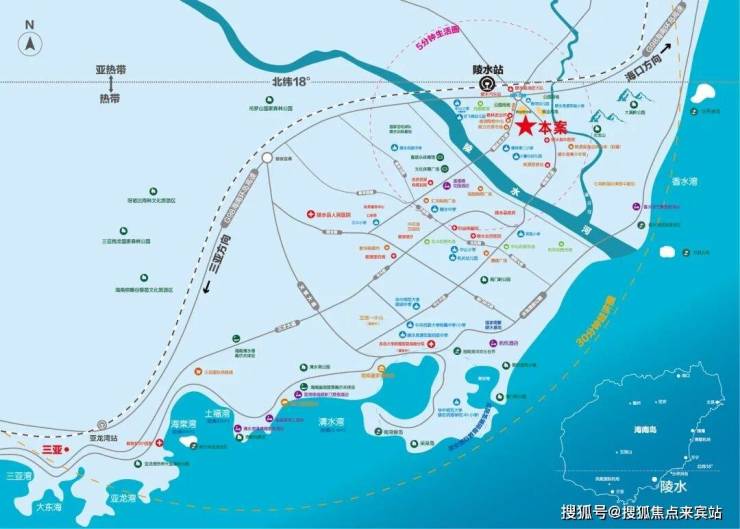 项目价值点·地段天花板陵水位于海南岛东南部,拥享118.57公里优美海岸线,“三湾三岛两湖一山一水”,北纬18度以南稀缺且珍贵,项目位于陵水椰林北大道和桃源大道交汇处,是市政城市更新“一河两岸”的核心位置。