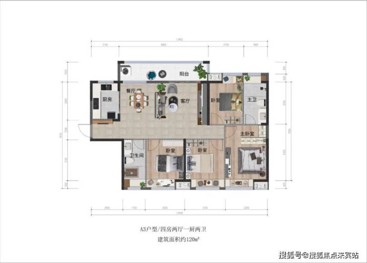 楼栋概况: 项目规划6栋两梯四户板式小高层,坐北朝南,户型方正,通透采光,全明结构。1#2#3#4#为14F, 5#6#为13F,楼栋1F为架空层配套区。主力户型 :🏠120m²:四房两厅两卫🏠100m²:三房两厅两卫