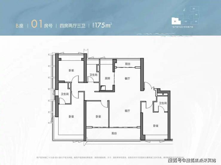 ※※B座01户型 175㎡四房两厅三卫
