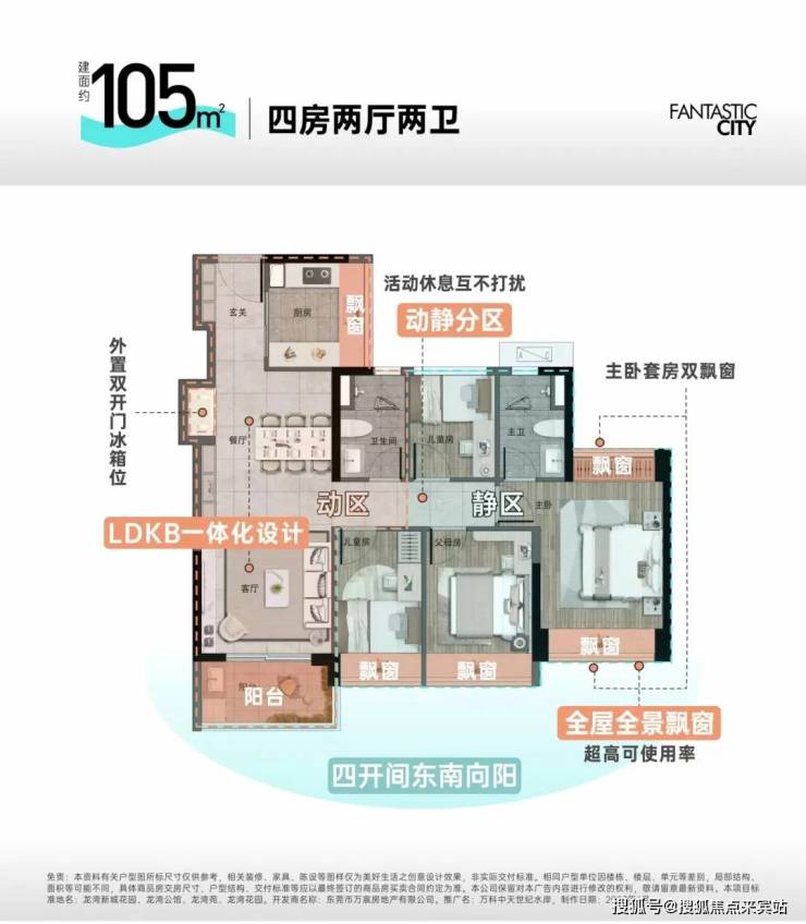 建面约105㎡的四房产品很是罕见。