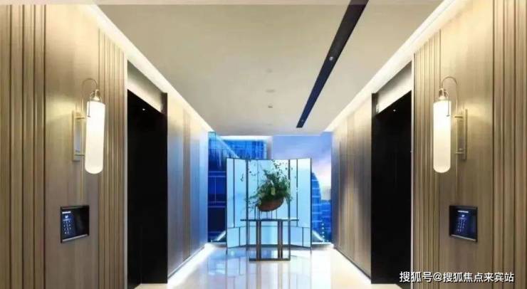 偏核心筒设计约70%使用率电梯厅自然采光 舒适候梯