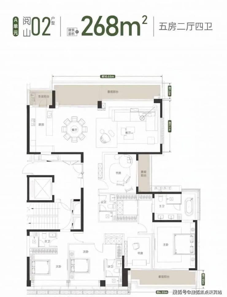 亮点三:约10.55米阔绰横厅设计,定位都市新贵人群 ,揽180°巨幕双客厅