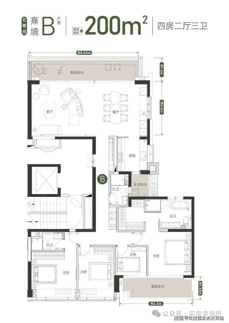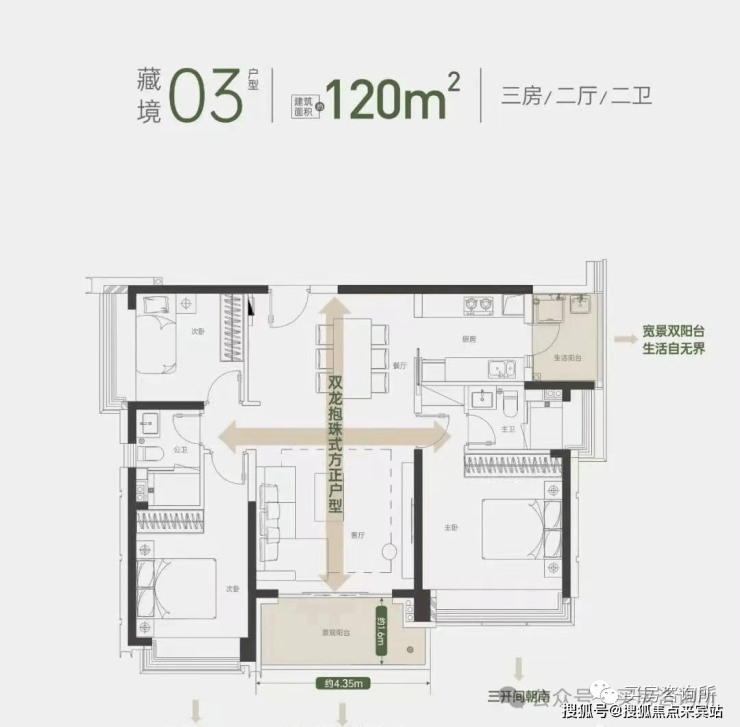 亮点四: 户户向南,动静分区, 约16.1米南向四大房,畅享尺度人居