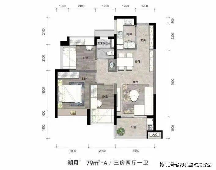 1、幸福三房,尺度宽阔有序,承载更多欢乐
