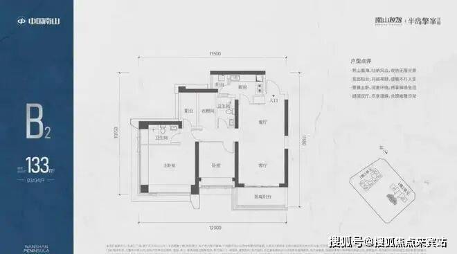 B2有两条腿,分别1-2栋03/04,主朝向西南向,竖厅设计。