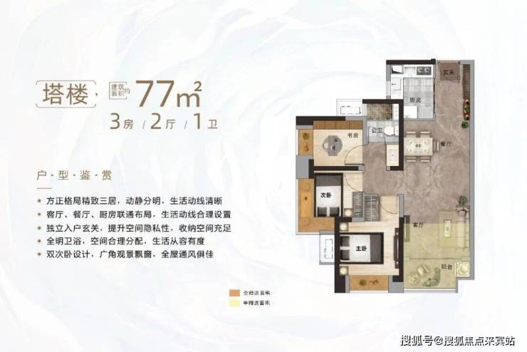 | 塔楼 约77㎡3房2厅1卫 |