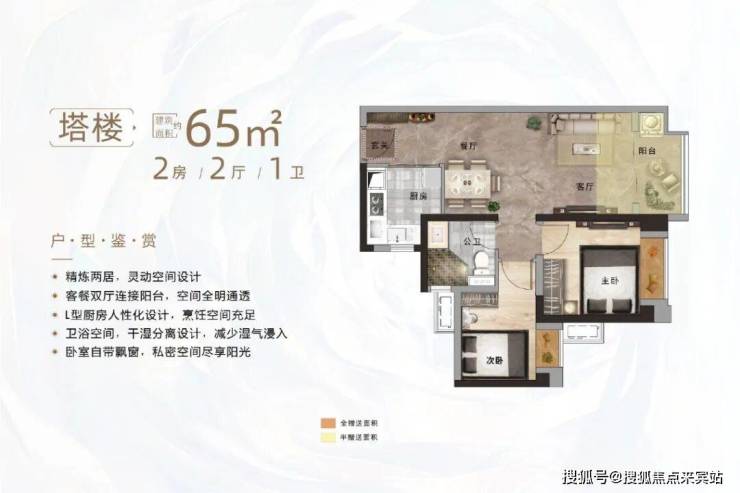 | 塔楼 约65㎡2房2厅1卫 |