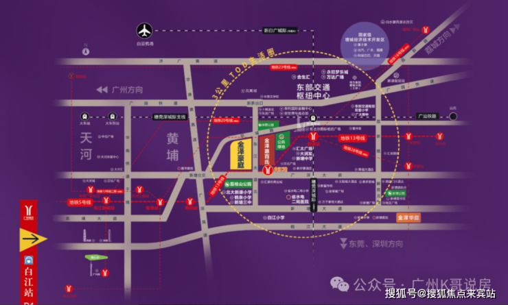 项目直线距离13号线白江地铁站仅700米,步行8分钟可达,由白江站乘坐13号线,2站黄埔,8站天河。