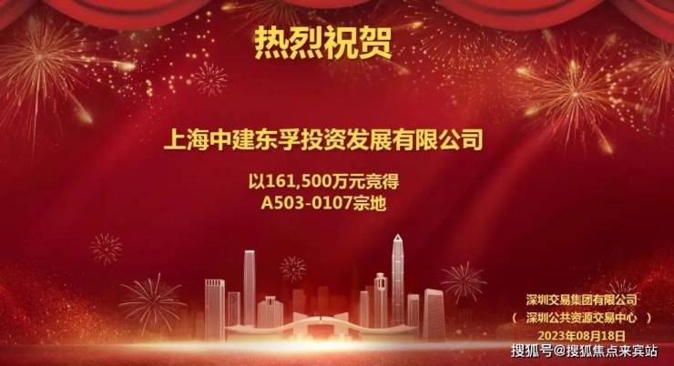 2023年8月18日,光明凤凰A503-0107宗地经6家房企29轮竞价,最终由上海中建东孚投资(中建八局)以16.15亿成功竞得。