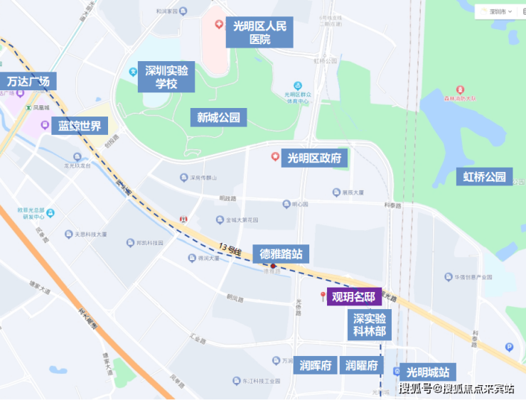 交通配套:观玥名邸家门口200米就是13号地铁线“德雅路站”,以前的同观路站已经改名;最高时速100公里,预计2025年开通运营,1站可到光明城站,换乘6号线/光明城高铁站,3站可到石岩,7站到西丽,8站到留仙洞总部基地,11站到南山高新园。