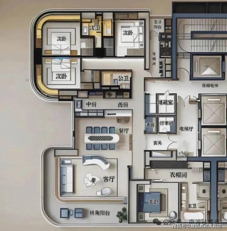 4梯3户:高效配置,保障出行便利。为追求品质生活、青睐核心地段与绝佳视野的新贵阶层,提供了更具性价比的入场券。