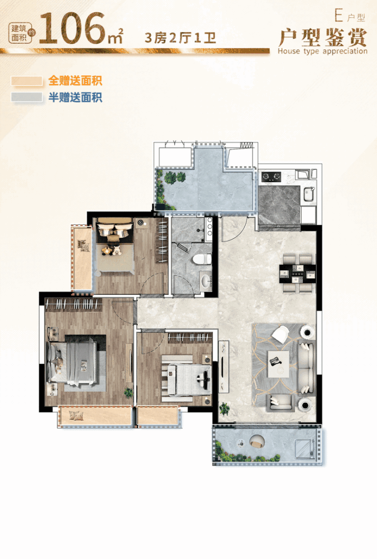 具体来看,106.06㎡的C户型做到了南北对流,还有全卧室飘窗和入户花园,三开间朝南,南向总面宽10.4m。128.58㎡的G户型,三房两卫,全屋四开间朝南,南北双阳台。142.74㎡的C户型是两梯两户的准豪宅产品。