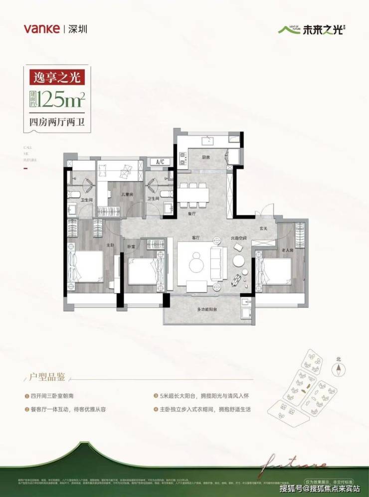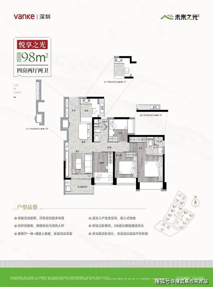 :四开间朝南,多功能次卧可改书房 / 儿童房,适配成长型家庭;