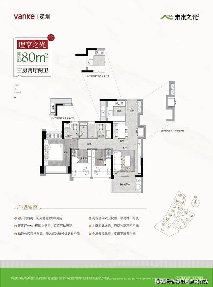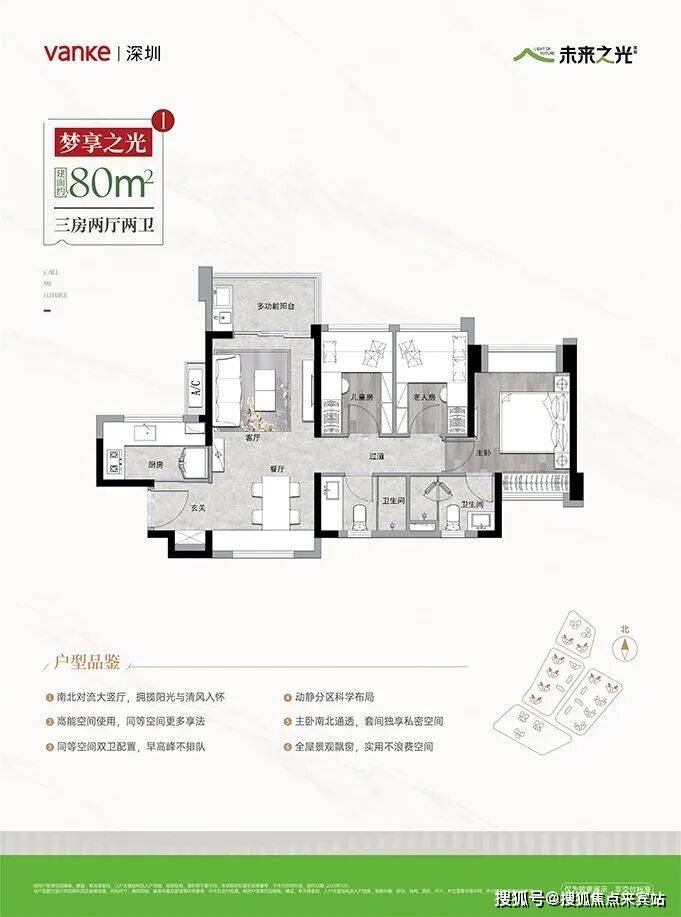 :南北对流大竖厅,全明格局;主卧南北通透,独享私密;全屋景观飘窗,同等空间双卫配置,早高峰不用排队。