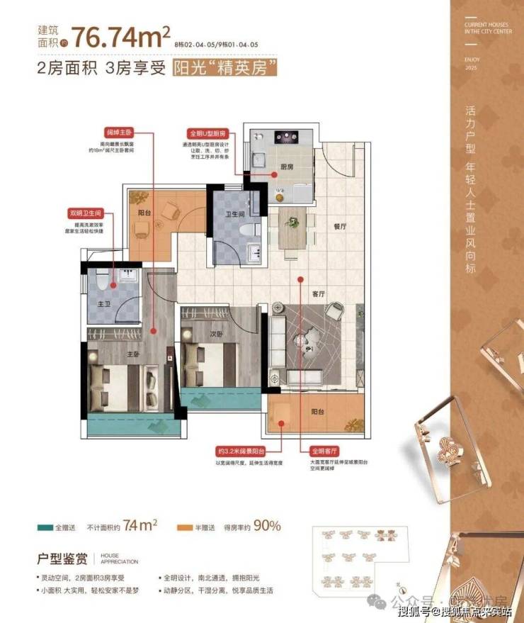年纪轻轻 享3房2厅2卫同等面积 2房变3房月供30xx元起 首付3万起轻松入住龙江城芯3房8座02、04、05户型 建面约76㎡