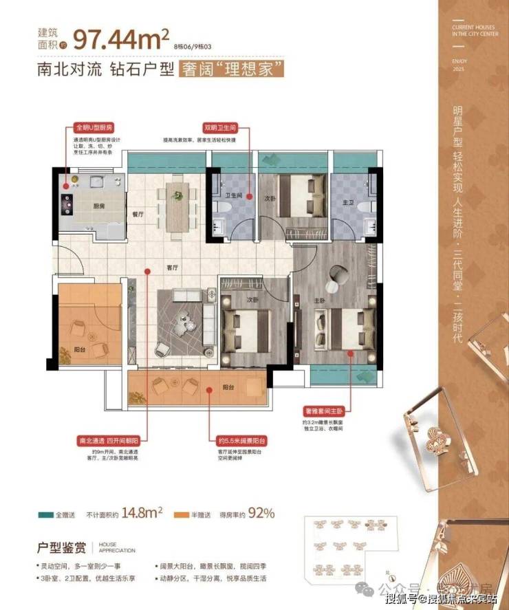三代同堂再也不是梦让辛苦多年的长辈多一分享受南北对流 同等价位买大四房8座06户型:4房2厅2卫 建面约97㎡