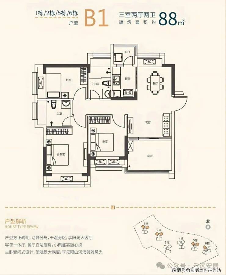 主力户型:72㎡两房(36 套)、88-89㎡三房(306 套)
