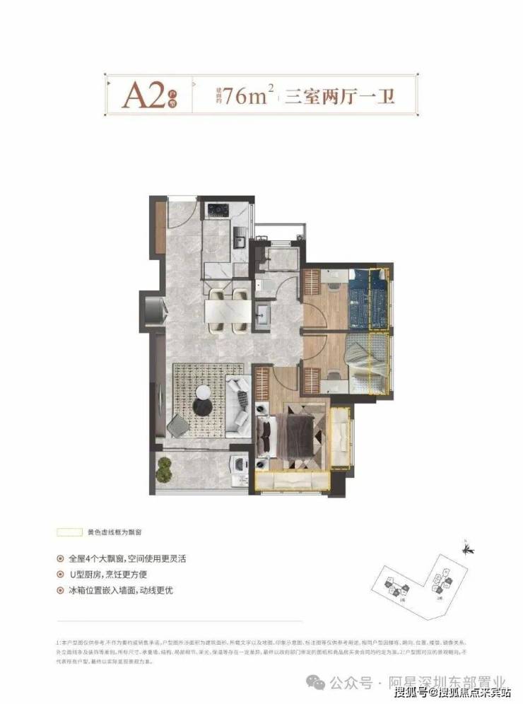 【户型】76㎡3房2厅1卫、90㎡3房2厅2卫