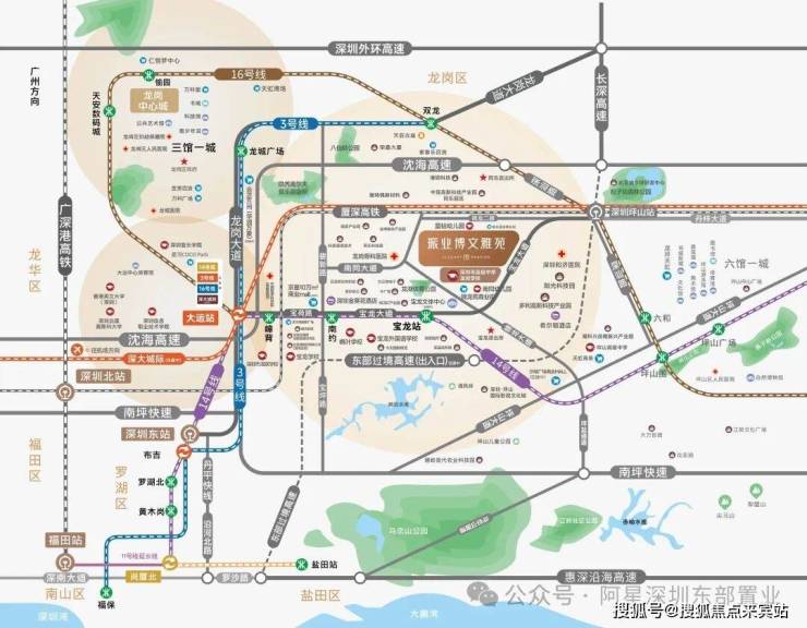 16号线坪山站 :坪山站升级“坪山综合交通枢纽”,16号线、高铁、深大城际(宝安机场——坪山,在建)三轨交汇;