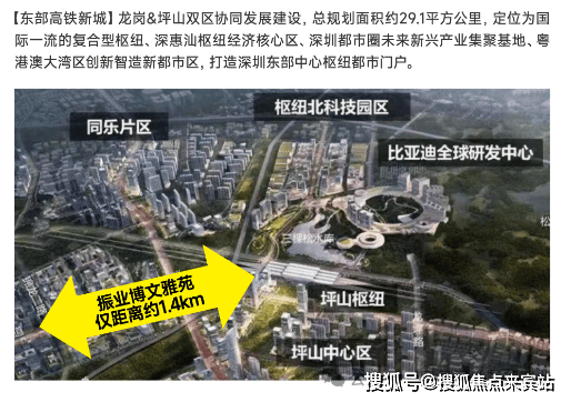 以坪山高铁站为中心发展枢纽商务、创新研发、生活服务。总规划面积约29.1万k㎡,其中龙岗16.4万k㎡,坪山12.7万k㎡,打造为深圳东部中心枢纽都市门户。