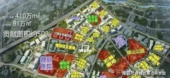 鸿荣源观城总占地面积约68万㎡,其中有40万㎡属于鸿荣源,包含住宅、商业、产业,还有约28万㎡由鸿荣源代建移交政府的公共配套,包含绿化、水系、公园、学校、医院、养老院、文体设施等。