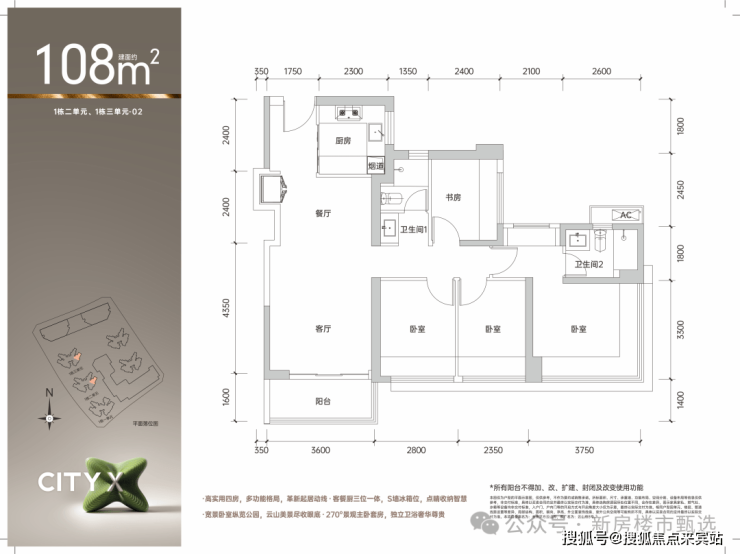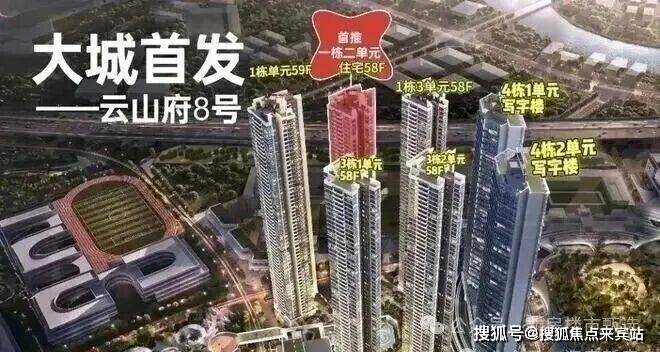 鸿荣源·观城未来平方云山府占地约2.7万㎡,总建面约37.4万㎡,计容积率建面约27.5万㎡,容积率9.23,包含约15.6万㎡住宅、约6.3万㎡办公、约7420㎡商业、约2.3万㎡配套。