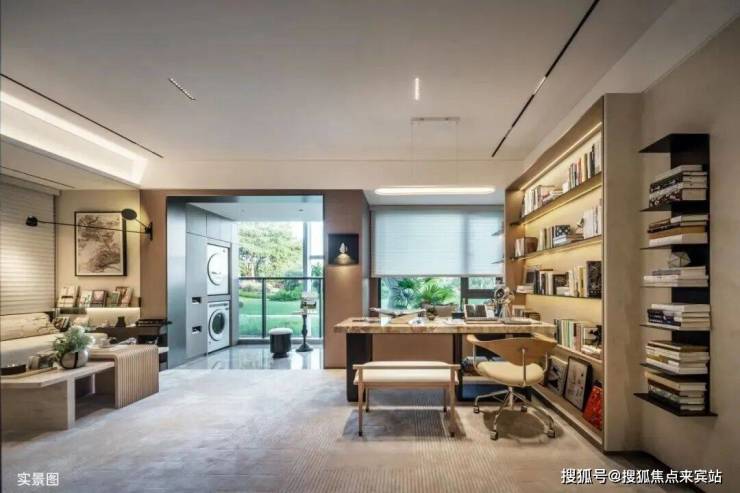 除此之外,展示空间还进行了去电视墙、改造飘窗拓展空间等设计,更精准契合年轻人的生活习惯。就连阳台的家务区规划,都考虑到科研者“不想被琐碎打扰”的需求。