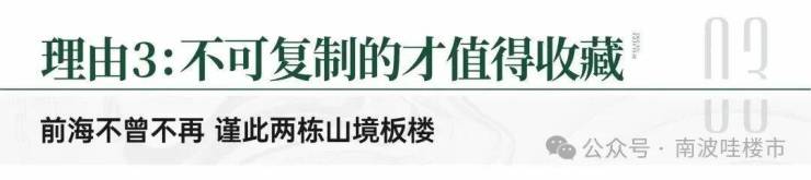 【TOP 级前海山境奢居】以约 2.66 超低密板楼形制,鼎立前海繁华之境,环抱一线大南山生态。从空间尺度、居住舒适度到景观视野多维革新奢居标准,以超越市场预期的豪宅品质,划定前海山居奢宅新高度。
