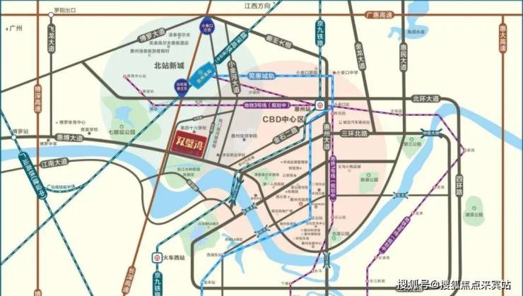 粤港澳大湾区的第三大高铁站——惠州北站,粤东最大综合交通枢纽,落成后拥双高铁、一站东莞、两站深圳、三站广州、四站香港,届时将大大缩减惠州与深圳的距离,实现湾区30分钟生活圈。