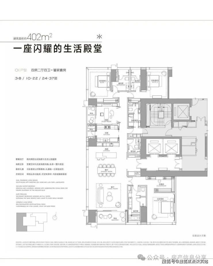 3栋低区3-37F,三面采光,客厅及主卧朝南看海,除了书房其它卧室全套房设计,该有的功能和尺度都给到了。缺点的话就是主卧整体尺度偏局促了一点。