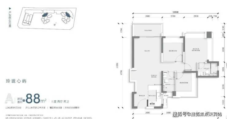 88㎡3房2卫520-600万 单价:5.9-6.8万