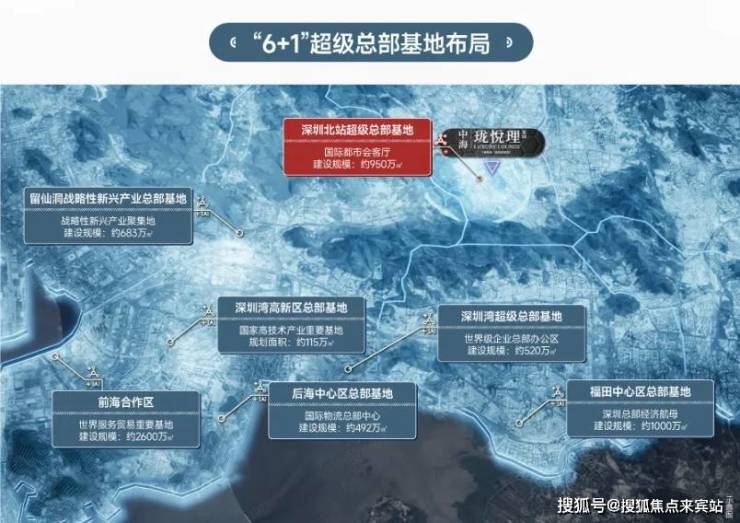●深圳北站超级总部基地:深圳6+1超级总部基地之一,建面约950万㎡*,是链接大湾区的超级枢纽总部CBD,规模仅次于前海合作区。