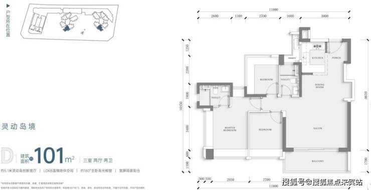 【101㎡3房2厅2卫】:客厅开间更大5.1米,LDKB一体化,而且还是三面采光,通风视野都会更好。