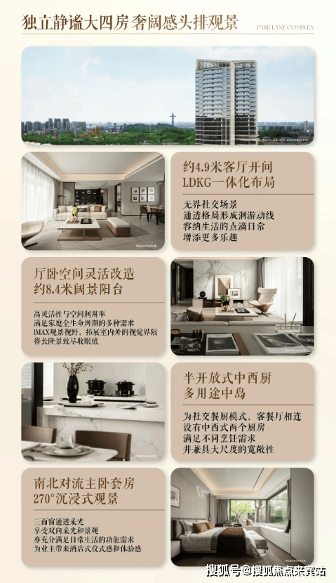创新设计:270°U型无柱飘窗(主卧18米采光面,景观视野对标豪宅)