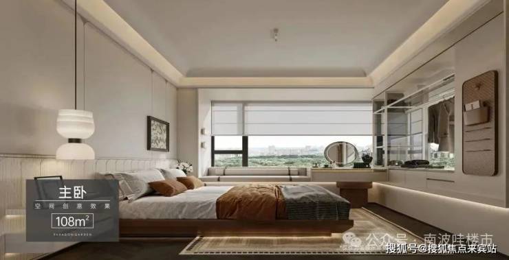 主卧双飘窗:一面铺软垫当“阅读角”,一面装书架当“工作台”