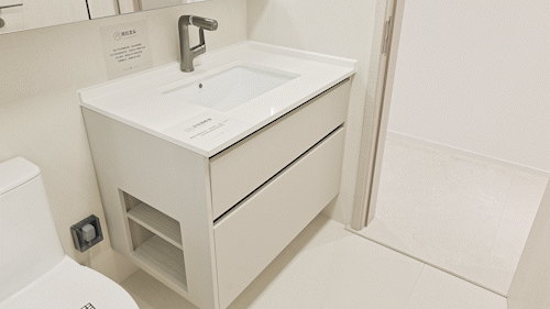 浴室柜“抽中抽”:第一层放牙刷杯,第二层藏牙膏、卸妆棉
