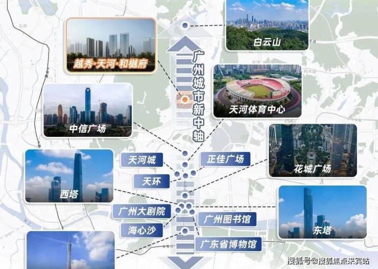 从天河北商圈到珠江新城,广州中轴线历经20年沉淀已发展成为一条超万亿的城市资本线,涵盖广州最顶级的配套资源、汇聚广州最靓丽的地标名片;
