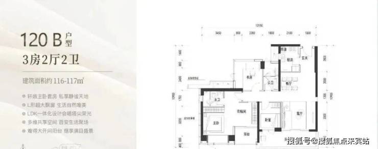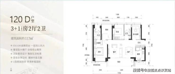 120㎡:客厅与卧室连通9.6㎡超大阳台,主卧带5.2㎡衣帽间,还有观景小阳台,主要为东南和西南朝向
