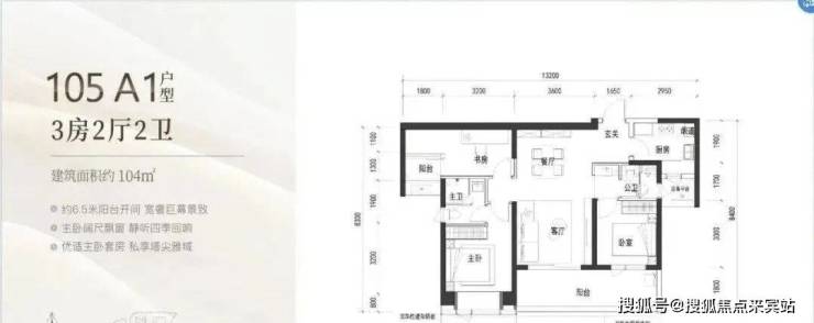 105㎡: 竖厅格局,客厅与卧室连通超大阳台,LDK一体化设计,主卧室270度转角飘窗,看城市景观,主要朝向为西南和东南