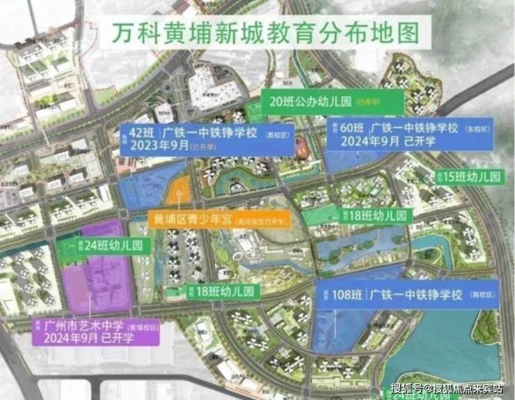 教育:万科黄埔新城规划建设11所学校,含6所幼儿园、2所小学、2所九年一贯制学校、1所高中,实现15年一站式教育。截止2024年9月,已经开学的学校一共有5所: