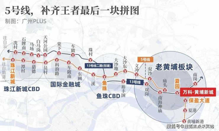 整条5号线,东西横跨黄埔、天河、越秀、荔湾,将黄埔新城与中心城区的金融城、珠江新城、白鹅潭等CBD快速连通,为未来广州西向佛山、东接东莞也做好串联准备。