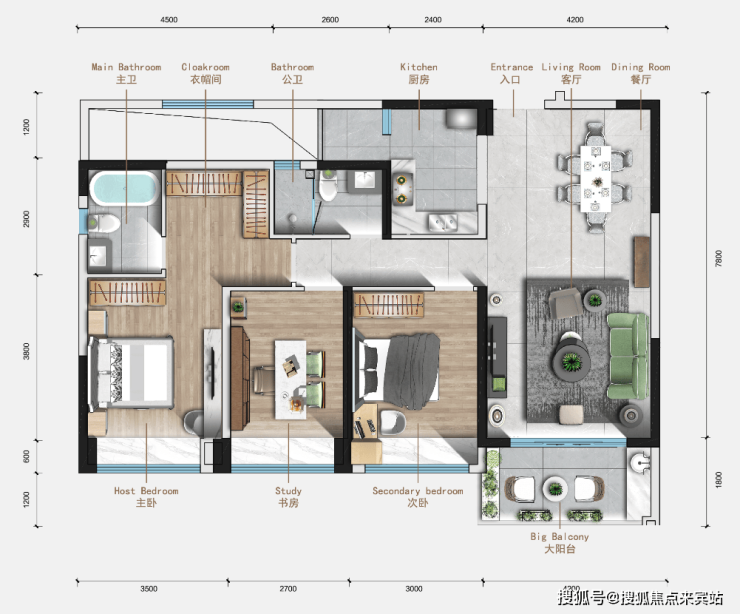 主卧独立生活阳台设计,交房时空间拓展又可以保证私密性