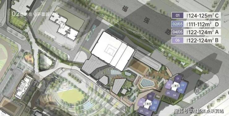 02地块共规划3栋塔楼,其中T2为办公用途,总层数50F;T5、T6为住宅产品,共计570户,层数分别为59F、58F,均为4梯6户设计,精装交付。